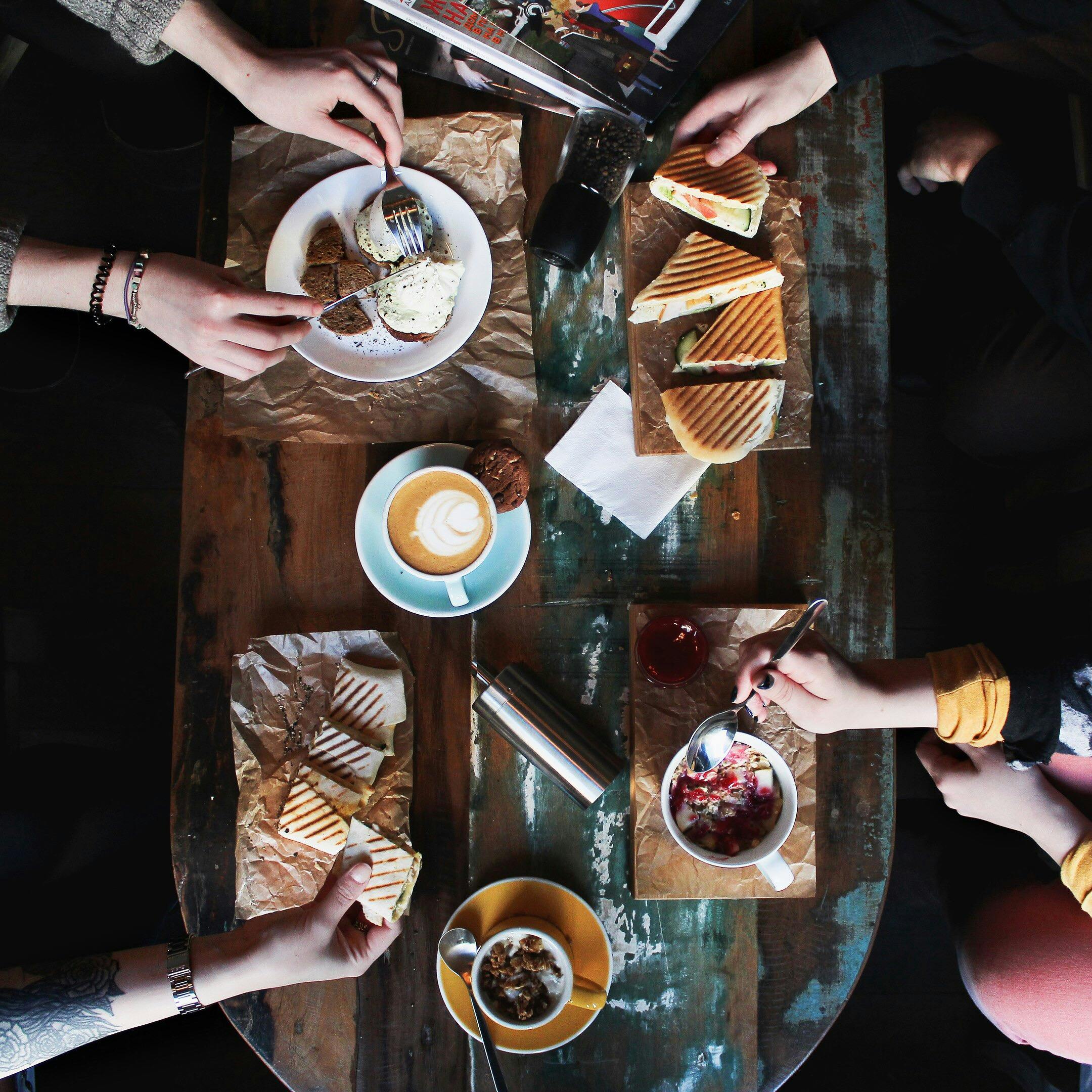 Casual daytime gathering in a comfortable café atmosphere.